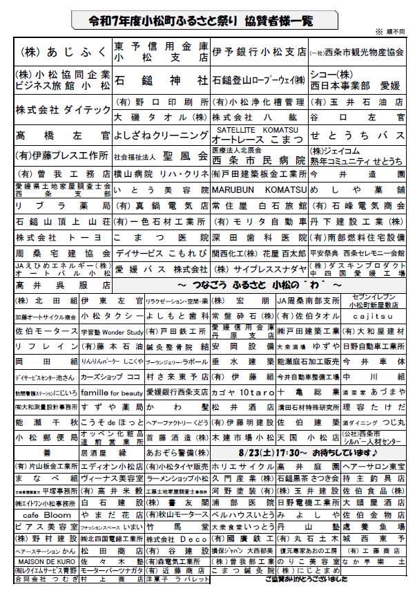 令和7年度小松町ふるさと祭り 協賛者様一覧